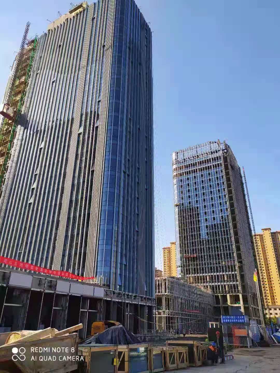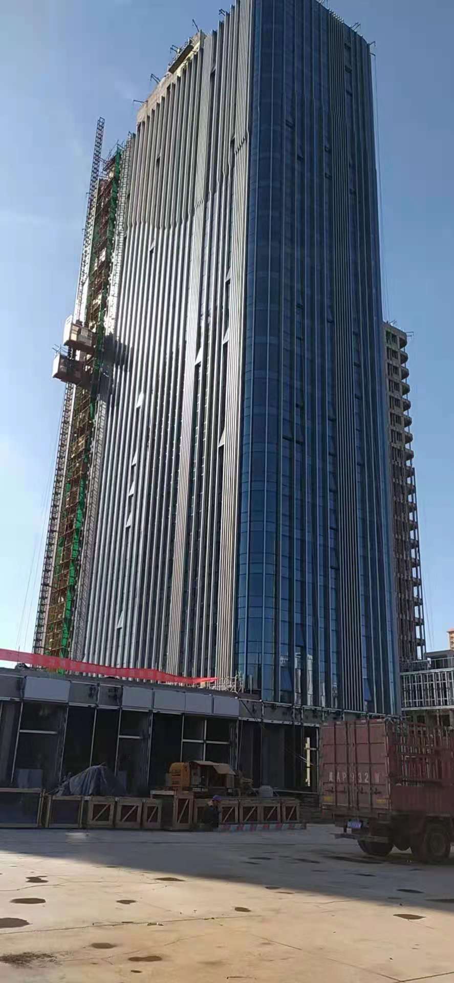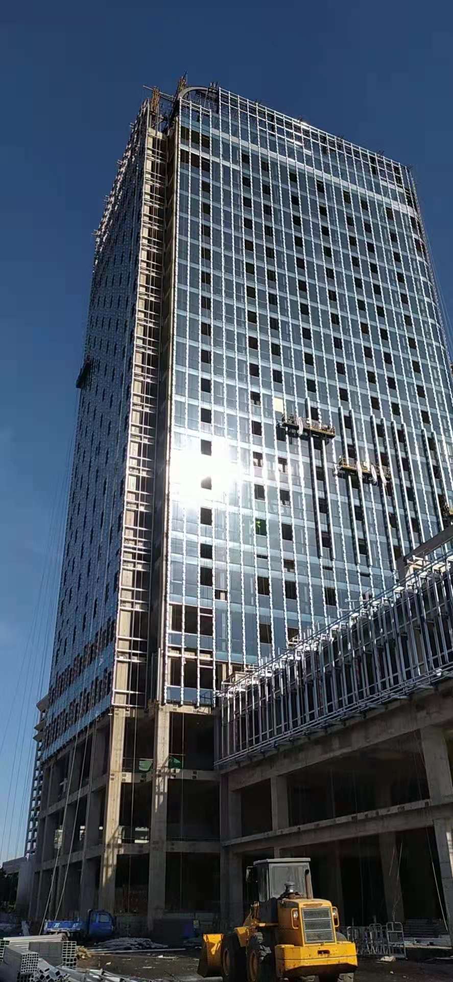 濟(jì)寧金冠宇公司裝飾承接河北定州國(guó)貿(mào)中 心外裝項(xiàng)目經(jīng)過(guò)幾個(gè)月的努力奮戰(zhàn)現(xiàn)有初見效果,再接再厲,建設(shè)精品工程
