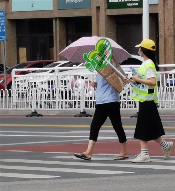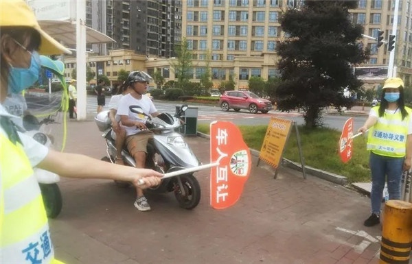 天一學(xué)員通過揮旗、手勢、言語勸導(dǎo)等方式,對行人不走斑馬線、非機動車不按指示行走等交通違規(guī)行為進(jìn)行了勸阻和引導(dǎo)。耐心細(xì)致的向行人傳播遵守交規(guī)、文明出行知識,用熱情和微笑感染著身邊的廣大群眾。